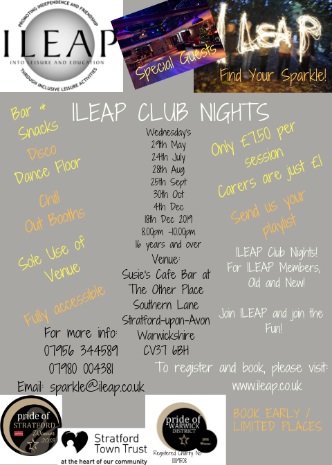 ILEAP Club Nights are for ILEAP Members old and new aged 16 years and over, so if you want to come along, just join ILEAP as a member and you will be able to book your ticket via our website. All tickets must be pre -booked and its ILEAP Members only.